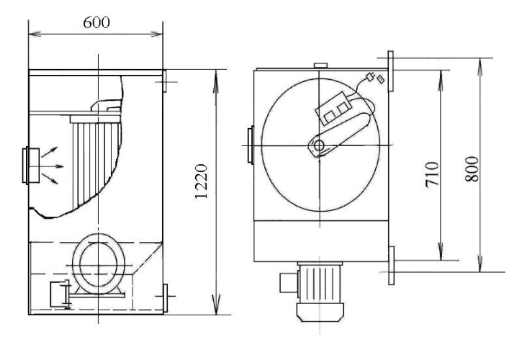 Фильтр оснащен вентилятором, пусковой аппаратурой, кабелем питания длиной 5 метров и разъемом для подключения к электросети.