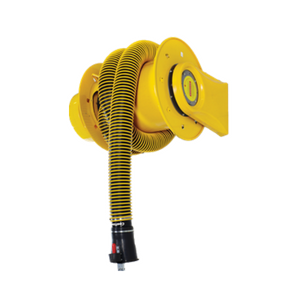 Система состоит из вытяжной насадки и шланга, намотанного на катушку. В комплект также может входить вентилятор (дополнительная опция).