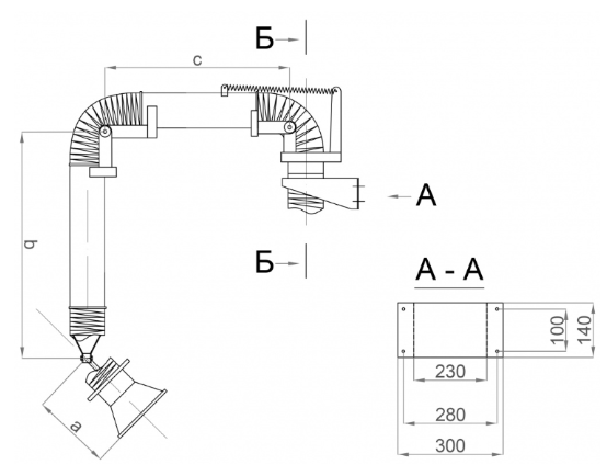 Устройство включает в себя воронку и два жестких воздуховода, соединенных между собой шарнирными узлами. Фиксация положения осуществляется с помощью шарниров и фрикционов, а для уменьшения нагрузки на фрикционные элементы установлены разгрузочные пружины.
