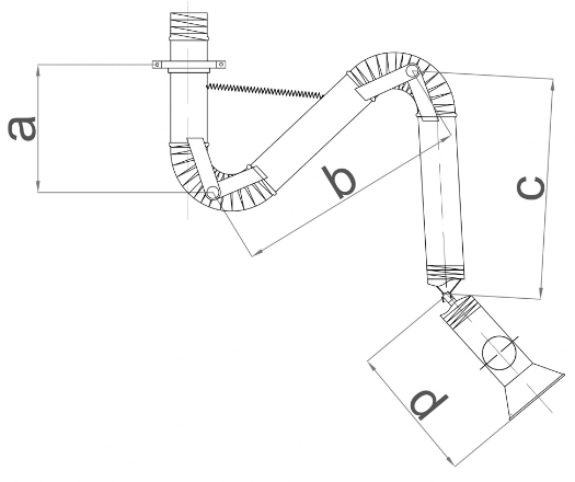 Его конструкция позволяет максимально приблизить воронку к источнику загрязнения, обеспечивая высокую эффективность улавливания вредных веществ. Устройство «Гном» состоит из воронки и двух жестких воздуховодов, соединенных шарнирным механизмом. Фиксацию устройства обеспечивают шарниры и фрикционные элементы.