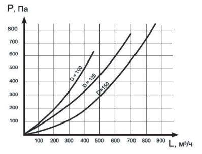 Диаметр воздуховода, мм | 100 | 125 | 150 | 100 | 125 | 150 | 100 | 125 | 150 | |