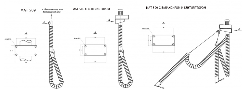 Воздуховод устройства МАТ-509 может быть выполнен в трех вариантах:
