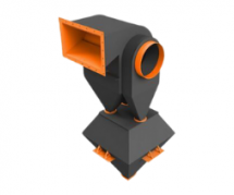 Золоуловитель состоит из корпуса с криволинейными стенками, соединённый с источником выброса дымовых газов фланцем прямоугольного сечения на входном отверстии, с круглым отверстием на боковой стенке для отвода очищенного газа, трех бункеров-осадителей, бункера-накопителя с шибером.