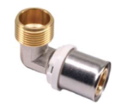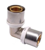 Пресс-фитинг в виде угольника обеспечивающего соединение труб одного диаметра под углом 90°. Корпус фитинга выполнен из латуни, гильза из нержавеющей стали. Монтаж производится пресс-инструментом с профилем ТН.