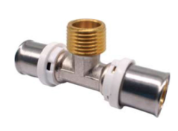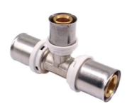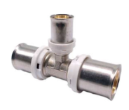 Пресс-фитинг для соединения трех металлополимерных труб различного диаметра. Корпус тройника выполнен из латуни, гильза из нержавеющей стали. Монтаж производится пресс-инструментом с профилем ТН.