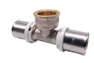 Пресс-фитинг с переходом на внутреннюю резьбу предназначен для соединения двух металлополимерных труб с фитингами и оборудованием, имеющим внешнее резьбовое соединение. Корпус тройника выполнен из латуни, гильза из нержавеющей стали. Монтаж производится пресс-инструментом с профилем ТН.
