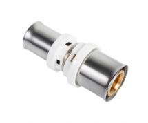 Прямой фитинг для соединения между собой металлополимерных труб. Корпус муфты выполнен из латуни, гильза из нержавеющей стали. Монтаж производится пресс-инструментом с профилем ТН.