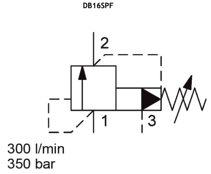 Клапан сброса давления Hydac DB16SPF с дистанционными опциями управления через дополнительный порт 3.