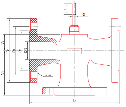 - двухходовой угловой регулирующий клапан.