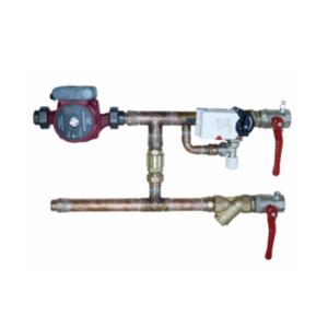 Смесительный узел КЭВ-УТМ-21H с насосом, применяется при разности давлений между прямой и обратной магистралью в месте установки завес: ΔP < 40 кПа.