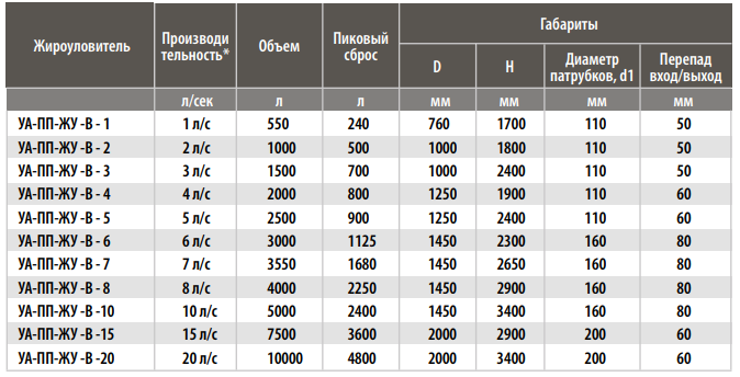 Технические характеристики жироуловителя вертикального УА-ПП-ЖУ-В