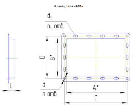 - ФНТ-248х202-О – Фланец типа ФНТ с условным сечением 248х202 в общепромышленном исполнении.