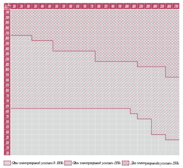 Типоразмеры, количество приводов и требуемый крутящий момент приводов клапанов КВУ-С, с электромеханическим приводом