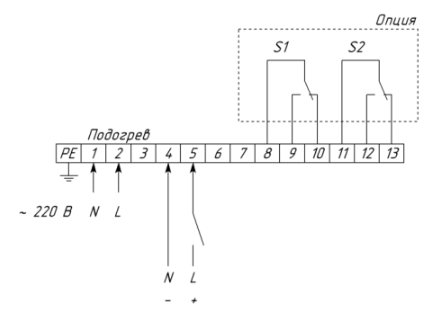 Главной отличительной чертой клапанов КВУ-С является наличие встроенного обогрева по периметру корпуса. Для защиты от обмерзания используется саморегулирующийся греющий кабель мощностью 40 Вт/м, работающий от сети 220 В. Это решение предотвращает замерзание подвижных частей и обеспечивает устойчивую работу клапана при температуре до –60 °C.