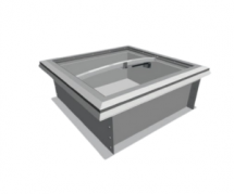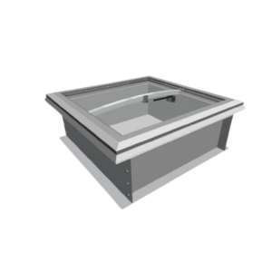 Модели люков для выхода на крышу с ручным механизмом открытия имеют основание из оцинкованной стали, каркас створки люка – из алюминиевых профилей, а светопропускающее заполнение створки – из сотового поликарбоната или энергосберегающего стеклопакета.