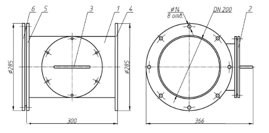- Ответный фланец 6, комплектуется вместе с люком-вставкой ЛВ-2-6, для закрепления на воздуховоде.