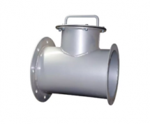 - Корпус-тройник 1 с двумя фланцами 4 и 5 по торцам и боковым люком, который позволяет визуально, а также на ощупь провести проверку состояния и, в случае надобности, прочистить место прижатия тарели клапана герметического вентиляционного (тип ГК ИА) – гермоклапана ГК ИА 01013-200 или ГК ИА 01012-200 от возможных засорений;