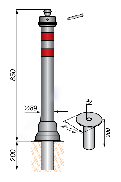 Столбик парковочный съемный "Классик-89" предназначен для резервирования парковочных мест, а также для ограничения доступа автомобилей на охраняемую территорию.