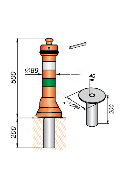 - Столбик съемный "Крепыш" внутренний замок (Оранжевый (RAL 2004)) - 1 шт.