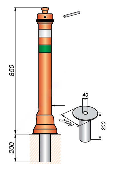 - Столбик съемный "Крепыш-В" внутренний замок (Оранжевый (RAL 2004)) - 1 шт.