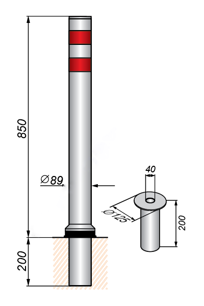 Опорная плита съемного столбика Эконом монтируются заподлицо с дорожным покрытием и не препятствуют механизированной уборке территории. Имеет усиленную защиту от коррозии с гарантированным сроком эксплуатации 5 лет.