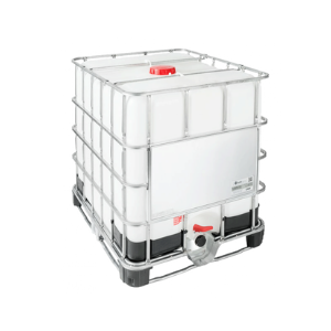 Промышленный многоразовый пластиковый контейнер кубической формы для перевозки сыпучих и жидких грузов.
