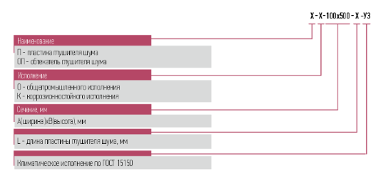 - ОП-О-100х750-У3 - обтекатель глушителя шума сечением 100х750 мм для районов с умеренным климатом 3-й категории размещения.