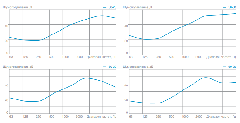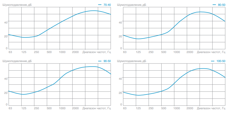 Шумовые характеристики пластинчатых шумоглушителей SUPM SHP