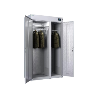 Шкаф оборудован ионизатором, системой ароматизации и фильтрами, что обеспечивает свежесть одежды и чистоту воздуха. Благодаря автоматизированному управлению он подходит для эксплуатации на производственных объектах.