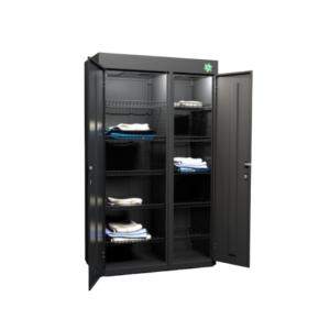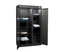 Шкаф состоит из двух секций и оборудован 10 вместительными перфорированными полками, которые обеспечивают эффективную циркуляцию воздуха и равномерную сушку вещей.