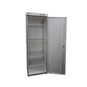 Шкаф оснащен керамическим нагревательным элементом, вентилятором для подачи воздуха и системой управления. Для обеспечения пожарной безопасности предусмотрена защита от перегрева.