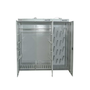 Сушильный шкаф оснащен керамическим нагревательным элементом, вентилятором для нагнетания воздуха и системой управления. Встроенная защита от перегрева обеспечивает пожарную безопасность.