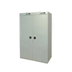 Сушильный шкаф оснащен керамическим нагревательным элементом, вентилятором для нагнетания воздуха и системой управления. Встроенная защита от перегрева обеспечивает пожарную безопасность.