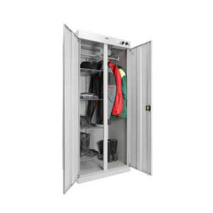 Шкаф оснащён несколькими перфорированными полками, удобными для сушки белья, головных уборов, обуви, аксессуаров и других вещей, а также штангой для развешивания одежды на плечиках.