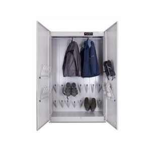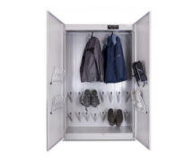 В нижней части шкафа расположены кронштейны для обуви, а на дверцах предусмотрены держатели для рукавиц, головных уборов и аксессуаров, что позволяет равномерно распределять вещи для быстрой и эффективной сушки.