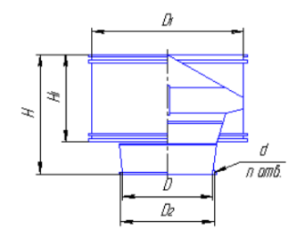 Обозначение дефлектора | Диаметр воздуховода D, мм | Высота Н, мм | Диаметр цилиндра D1, мм | D2 | Высота цилиндра H1, мм | n | d | Масса, кг |