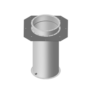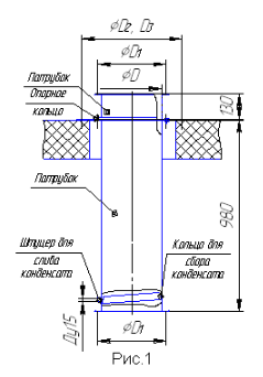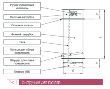 Узел прохода УП (см. рис. 1) состоит из двух патрубков и опорного кольца, расположенного между ними. Места соединений уплотняются силиконовым герметиком для обеспечения герметичности. Нижний и верхний патрубки оснащены фланцами с отверстиями для крепления.