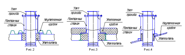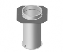 Установка узла на монтажный стакан позволяет организовать проход вентиляционной шахты через кровли из профилированного металла (утеплённого или нет), сэндвич-панелей любой толщины и наклонные кровли. Прямоугольная форма стакана упрощает гидроизоляцию примыканий мягкой кровли, повышая её надёжность.