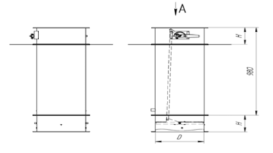 Габаритные и присоединительные размеры узла прохода с клапаном ручного управления с кровли длиной 980 мм