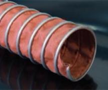 - стенки шланга: двухслойная конструкция): внутренняя и внешняя стенки шланга - высокотемпературная ткань, покрытая специальным жаростойким составом, армирована вплетенной проволокой из нержавеющей стали
