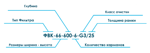 | ФВК | Тип фильтра | Обозначение карманного фильтра грубой очистки с фильтрующим материалом из полиэстера  |