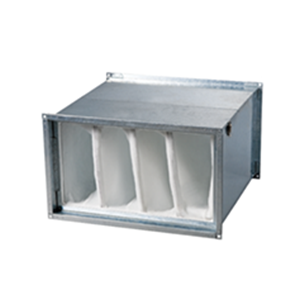 Корпус изготовлен из оцинкованной стали. Откидная крышка фильтра оборудована рычажными замками для быстрого доступа к сменному фильтрующему элементу. Фильтрующий элемент карманного типа изготовлен из нетканого полотна из синтетических волокон и зафиксирован на каркасе из стальной рамки. Фильтры изготавливаются из материалов с классом очистки G4, F5, F7.