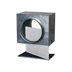 Корпус изготовлен из оцинкованной стали. Фильтр-бокс оснащен соединительными фланцами с резиновым уплотнением для герметичного соединения с воздуховодами. Откидная крышка фильтра оборудована рычажными замками для быстрого доступа к сменному фильтрующему элементу. Фильтрующий элемент – из нетканого полотна из синтетических волокон, фиксируется на каркасе из стальной рамки.