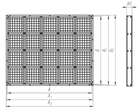 - Ус39А2х3-У2 – панель для установки фильтров ячейковых типа Фя в строительных конструкциях, компоновка ячеек в панели 2х3 для районов с умеренным климатом 2-ой категории размещения.