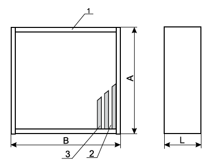 Фильтр (рис.2) состоит из корпуса (1) (оцинкованная сталь), внутри которого складками уложен фильтрующий материал (2). Для предотвращения слипания соседних складок фильтрующего материала между ними проложены гофрированные сепараторы из алюминиевой фольги (3). Фильтрующий пакет, включающий материал с проложенными сепараторами, герметизируется в корпусе посредством прокладки уплотняющего материала или заливки по всему периметру герметиком.