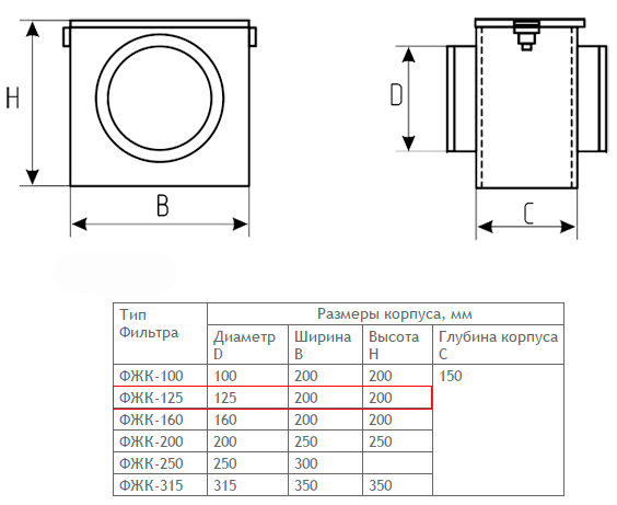 Модель | ФЖК 100 | ФЖК 125 | ФЖК 160 | ФЖК 200 |