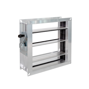 Прямоугольная алюминиевая регуляционная заслонка RKALM используется для регулировки потока воздуха или плотному закрытию воздуховода.