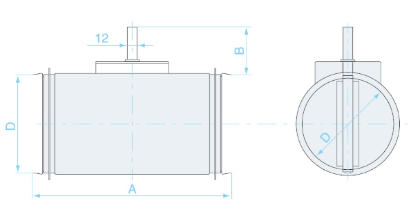 На кромке поворотной пластины установлен резиновый уплотнитель, который предотвращает примерзание заслонки к корпусу при низких температурах и обеспечивает плотное перекрытие канала. В стандартной версии заслонка SKD комплектуется площадкой для установки электропривода, а по запросу может быть оснащена ручным приводом.