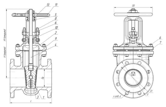 Задвижка стальная клиновая с выдвижным шпинделем фланцевая 30с64нж.